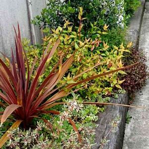 車庫の隅の葉壇です。 陽当たりが強い場所なので、西日に強い葉っぱだけのコーナーにしました。