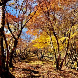 釈迦ヶ岳登山、釈迦ヶ岳から猫岳に向かうトレイル。見上げれば黄色一色と雲ひとつない青空! 釈迦ヶ岳登山動画はプロフィールリンクからご視聴頂けます