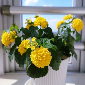 出窓の黄色い「ランタナ」🌿💛 青空が良く似合います🤗💕 🏷月曜日にビタミンカラー 🏷幸せの黄色いお花 に参加させていただきます🙇