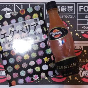 Amazonの第1回オランジーナ祭りのオランジーナが届きました😄 3問くらいのチェック入れるだけのアンケートに答えただけで送料無料でオランジーナ24本もらえた🙄 エケベリアが1000種類載ってる本も無事買えました✌️ じっくり読もう😊📙
