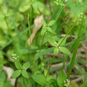 ヨツバムグラ アカネ科ヤエムグラ属 花径は1mm位とちっさい😂 葉は4個輪生し、1対は本葉、もう1対は葉状の托葉です(本葉より少し小さい)😊 長さは0.6~1.5cm、幅3~6mm。 縁や裏面に白い毛があります✨ 可愛い葉なんだなぁ、と暫し眺めていました♡