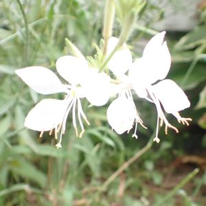 ハクチョウソウ(白蝶草) アカバナ科マツヨイグサ属 北米原産 園芸種 別 名 ガウラ、ヤマモモソウ 夏になる前から咲いていたハクチョウソウもそろそろ終わりそうです。 園芸種だったのが逸出して野生化しているのを見かける事があります。 どうか、この先(厄介者)扱いになりませんように。