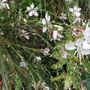 ハクチョウソウ(白蝶草)和名ヤマモモソウ(山桃草)別名ガウラ アカバナ科 原産地 北アメリカ 初夏から秋まで次々と蝶が飛んでるように咲き続けます。 途中✂️するとまた花数が増えますね。 こぼれ種でも増えますね。🌱🌱