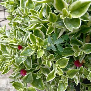 斑入りベビーサンローズ✨ 夏の直射日光でへにょへちょになっちゃって日陰に移動しておいたら復活していてくれました…! 元の場所に戻ってきてくれてありがとう😭
