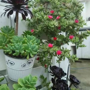 斑入りベビーサンローズ この子多肉っぽくないし、絶対買わない!→なんか花とか咲くし買わないわ→観葉植物っぽいからスルーだし→斑入りは可愛いけどさ→微妙に葉も肉厚なのね→お値段お手頃だな→名前かわいいよねサンローズとか→だから買わないってば→あーでもあの子強そうだな→お花咲くのもいいよね→斑のとこがピンクになってりゅ♡→もうだめ 気になった時点で予測できた未来 2ヶ月くらい我慢したのに 狩ってしまった(*´ー`*)