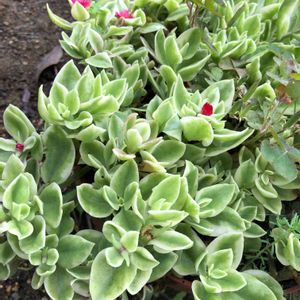 遥むかし💦結婚当初、今思うと結婚のお祝いのつもりだったのか、師匠(先生)から「家のが増えたからあげるよ」と、いただいたのが、この緑色の種類のだった。 綺麗な緑の肉厚の葉が不思議にピンピンキラキラとしていて、細い沢山の花びらの赤い小さな花が咲いて。可愛かった。 この仔を購入して育て方などを調べてみて、この緑色の方の種類をみつけて"あの時いただいた植物だ!"と知った次第。 偶然にも明日は結婚記念日。