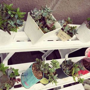 昨日せっせと作った寄せ植え😆 寄せ植え苦手意識を克服するためたくさん作りましたΨ( ̄∇ ̄)Ψイヒヒ 紫のヤツかわいいな~ 名無しで名前分からないのですが、わかる方いらっしゃいますか? 直径10cm強です。 黄色いのも名前忘れてしまいました💧