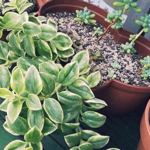 こんにちはପ(⑅︎ˊᵕˋ⑅︎)ଓ 秋も深まり、多肉達も綺麗盛りですね〜💖 毎朝可愛いコを撮り溜めしているのですが、出し切れなそうなのでまとめて放出しちゃいまーす\( ˙▿︎˙ )/✨ ランチタイムpicは 「どのコも可愛いの😍❣️」 七福神三兄弟、夏にお腐れに連れていかれた大株七福神の忘れ形見達。 かなり瀕死だったけどどうにか根付いて大きくなってくれました❗️ 小さなふたつはハーブさん姉妹へのプレゼントです🎁 謎の葉挿しっ子、小さくて真っ赤で可愛いなぁ〜😍 二和園のおっちゃん曰く「ラウィじゃねーかな、分かんねえから100円でいいや❗️」との事です(笑) 大きくなったら更に可愛くなりそうですよね🎶 ミセバヤのお花、いつの間にか咲いていました🌸 ポンポンみたいにまあるくて可愛いなぁ〜😍 色も凄く可愛い❣️ とにかく可愛い‼️(笑) 斑入りベビーサンローズ、鉢の後ろ側に伸びていたのをよいしょ!っと戻したら真っ白なコがいました✨ 神秘的な美しさ˚✧₊⁎❝᷀ົཽ≀ˍ̮ ❝᷀ົཽ⁎⁺˳✧༚ まだお花も咲かせてくれて可愛いなぁ〜😍 仕立て直ししてあげなきゃ💦 謎の葉挿しっ子 その2、多分レズリーじゃないかなこの形は🤔 うち、こういういつの間にかポットの中に紛れてる葉挿しっ子が多いんです💦 細い葉っぱが紅葉していて可愛いなぁ〜😍 ブロンズ姫、ダイソー出身❗️ 茎立ちした親株から、子株がふたつ出てきていつの間にか立派になってました💡 買って来たのが4月中頃だったから、ちょうど半年くらいで親株と同じくらいになるんですね。 しっかり紅葉してて可愛いなぁ〜😍 他にも可愛いコがいっぱい❣️ 毎日庭に出て眺めるのが楽しくてしょーがない✨ 幸せ‼️(笑)