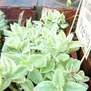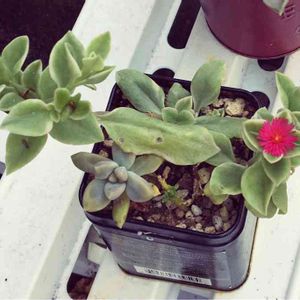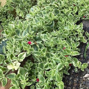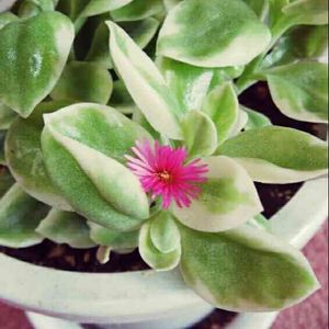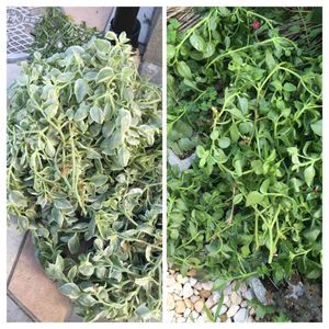 ★ウチにはこんな子もいるっちゃいるシリーズ 第11回目は斑入りベビーサンローズ あるんですよ‼️うちにもベビサン‼️(笑) 多肉に興味ない頃はバ○くさい植物(←こらっ💦) って密かに思ってたのはナイショです🙄 あ、斑なしのグリーンのほうね😅 Baby Sun Rose(ベビーサンローズ)の愛称で 親しまれている南アフリカ原産の常緑多年草✨ 正式名称はアプテニアで、和名が花蔓草です。 斑入りは花蔓草錦または白覆輪花蔓草。 葉が鮫肌のようにデコボコしているので、 太陽が反射するとラメラメに見えます😁 暑さ寒さどちらにも強く、 真面目に育てると可愛くなってくれる子🤡 生花として売られているベビサンよりも、 多肉植物として売られているもののほうが、 苗も小ぶりで引き締まっていて、 ピンクの発色もラメも綺麗な気がします🤔 元は同じはずなのに不思議ですよね~✨ もしかしたら品種が違かったりして?(笑) 海外には同じ斑入り種で、 クリスタルという園芸品種があるようです。 インスタに別画像postしてあります✨ -∴-∵-∴-∵-∴-∵-∴-∵-∴-∵-∴- Aptenia cordifolia variegata アプテニア コルディフォリア 斑入り 和名 花蔓草錦(ハナツルソウ(クサ)ニシキ) 別名 白覆輪花蔓草(シロフクリンハナツルソウ) 斑入りベビーサンローズ ハートリーフアイスプラント シノニム Aptenia cordifolia 'Crystal' Mesembryanthemum cordifolium ※シノニムには普通種のものも含まれます