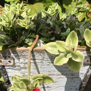 初めまして。 最近多肉植物を育てはじめました、勉強中です。よろしくお願いします。 この子はダイソーで購入したのですが、属名も不明で…。 調べ方もわからないありさまです。 どなたかわかる方がいたら、教えてください。 よろしくお願いします。