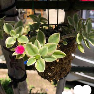 ハンギングの中のベビーサンローズさんの花が咲きました♬😃 ピンク蕾が少しづつ膨らんできてたので待ってました 可愛い〜٩(ˊᗜˋ*)و✧*。