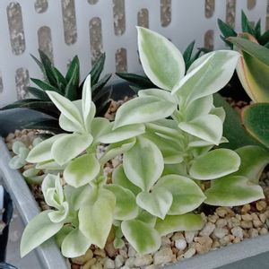 脇芽がわさわさ増えてきたベビーサンローズ✨ 斑入りの葉がキレイだなぁ! 一本から増やしていくの楽しい😚 ハオルチアと寄植えして、棚の奥であまり日が当たらない場所に置いてある 水やりは2週間に1度くらい
