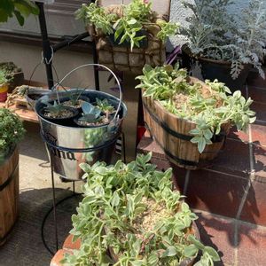 ベビーサンローズ育成中❓ではないんだけど 秋の寄せ植えのために植っていた鉢を空けたくて移植 5✂︎カットでお迎えした時からは何倍にも増えました🌱🌱🌱 いま、うちに来るとお土産としてプレゼント🎁中です🤣