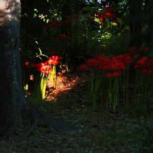 木陰の彼岸花 木漏れ日 今少し楽しみたいです。