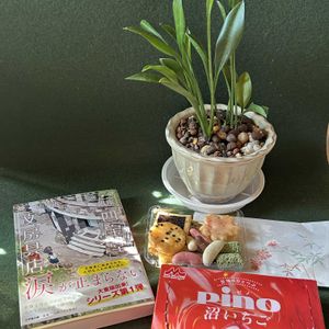 今日のお花はサンスベリア 我が家のサンスベリアスプーンリーフ スプーン型の葉が可愛いと言いたい所ですがスプーンに見えない😅 成長がゆっくりでお迎えして数年経つのに変わらず…存在感が無い様で他に移動すると何か寂しい気がするスプーンリーフです〜😍 今日の読書はGS友さんお勧め💕 上田健次さんの「銀座『四宝堂』文房具店」…老舗文房具店でのオーナーとお客様とのじんわり染みて心温まるお話が詰まっててゆっくり読みたい本💓 お供は小倉山荘さんのおかきにチョコピーの「想ひそめし」とGS友さんお勧めのアイス「ピノ」の新製品「沼いちご」💓 果汁20%に苺風味のシュガーチップが入って食感もナイスな「沼いちご」🥰 一つ食べると口の中はずーっとイチゴ味〜抜け出せない美味しさ〜正に「沼いちご」❣️ コンビニで数量限定販売中です〜😍