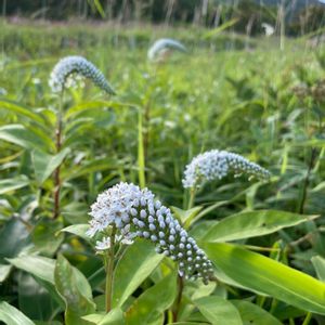 オカトラノオ(丘虎の尾) サクラソウ科 白色の小さなお花を茎の先に総状につけ*️⃣下方から開花していきます🤍 花穂の先端が虎の尾のように垂れ下がります🐯