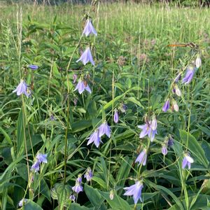 霧降高原 プチ花散歩🚶♀️🎶🌸 目を惹くお花がいましたよ〜🥹💕🎶 ① ヤマユリ ② ノハラアザミ ③ ツリガネニンジン ④ オカトラノオ⁇ ⑤ ヤマウド