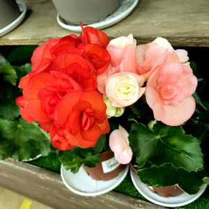 昨年買った見切り品のうちの2つです。 1枚目はエラチオールベゴニア。 切り戻して水挿ししていたほうから花が咲きました。 いい色です。 本体はまだ養生中ですが、きっと大丈夫かと。 2枚目以降は、カランコエの5色寄せ植えです。 ぼろぼろ激安だったので買っちゃいました🤣 すぐ切り戻して大事にしてたら冬を越え、花も咲きました。 スカスカですから、花後またなんとかした方がいいですね。 赤、黄色、橙、ピンク、白ピンク。 翌年を見越して見切り品のコーナーを見るのが最近好きです🤣