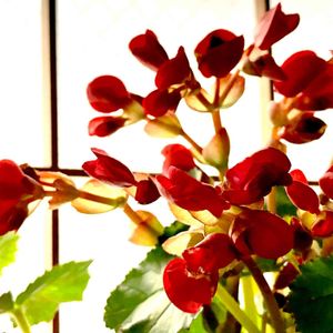 おはようございます、素敵な週末をね❗️ エラチオール ベゴニア💖 花言葉「愛の告白」、ゆがんだハートの葉の「片思い」 秋から冬に、赤や黄、オレンジ色などの一重や半八重、華やかな八重の雄花に、少し遅れて雌花が寄りそって咲いて、ひとつの花房になり、たくさんの花房が群がるように咲きます