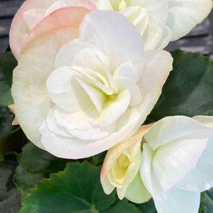 花屋さんの店頭で白い花びらの外縁部(の所々に)にうっすらと紅色が混じる花を見つけました。「リーガース・ベゴニア」です。別名「エラチオール・ベゴニア」。シュウカイドウ科ベゴニア属で、南米熱帯高地原産のベゴニア・ソコトラナとアラビア半島原産の球根ベゴニアの交配種。花名は、この花の品種改良に尽力したドイツの育種家オットー・リーガーに由来。