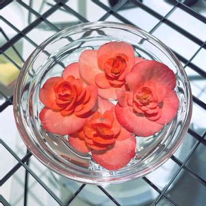 ベゴニアちゃんの花殻😍 すぐ捨てるのはしのびなかったので、 水に浮かべてみました〜🏊♂️ 手触りがいぃいぃいいい〜👍