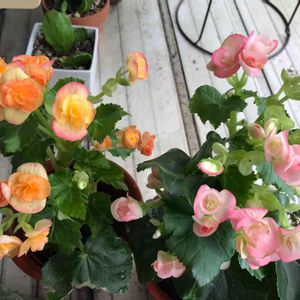 今日母の日ですね😆 ⬅️息子からレインボーアロマローズとチョコレートクッキー ➡️娘からリーガースベゴニアとへデラとカーネーション 孫娘が選んだそうですが リーガースベゴニアは室内で管理なので寄せ植えできませ〜ん どうしましょう
