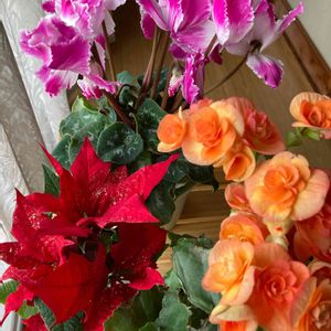 《クリスマス🎄&お正月🎍のお花》 ダンディ邸の玄関に華やかな花がやってきた🤗🌸🌼 ポインセチア🌸シクラメン🌼リーガースベゴニア🌸 一気に玄関が華やかになる🤗💕🍁☃️