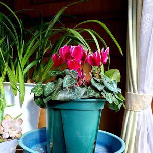 おはようございます🥰 きのう、久し振りに電車に乗って隣駅のお店にお買い物に出かけてみました。 娘たちがハラハラしながら、電車の乗り降りを見守ってくれました。 お店の前の花壇スペースのシクラメンさん スマホで、撮りました😉外出できて、少し、自信がつきました