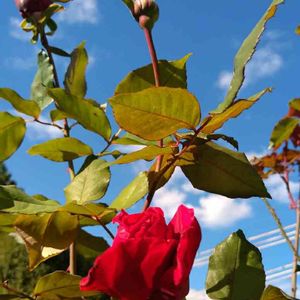 🍀おはようございます🍀 青空が広がり良いお天気です🎶 庭の古木の薔薇イーナーハークネスが青空を喜んでるみたい💕 とても香りが良い薔薇🌹
