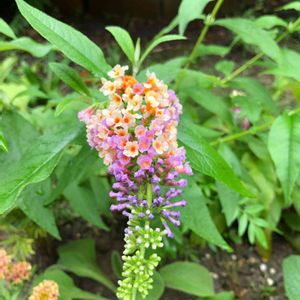 変わり咲きに目がない私😅 ブッドレアのピンクを植えて満足した私は、色が変わり咲くフラワーパワーまで迎え入れてしまいました。 ピンクも今すごい蕾の数ですが、こちらも小さい苗なのにしっかりと花が咲きはじめました。 いゃ〜ん💕可愛い〜💕と1人庭で悶えました😁 紫からピンクになりアプリコットのようなオレンジに色変わりするみたいです。