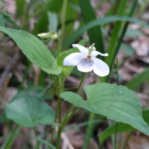 芦川すずらんの里…その2 エゾノタチツボスミレが咲いていることを花友さんの投稿で知り、会いに行ってきました✨🤍💜🌿 他のスミレより1ヶ月ほど遅く花を咲かせ、同じ場所で白色〜淡い紫色まで見ることができました。 両手(葉)を水平に広げた立ち姿は凛としていて素敵でした。また距は短く浅く割れた形が特徴で、桃尻はとっても可愛いかったです💕