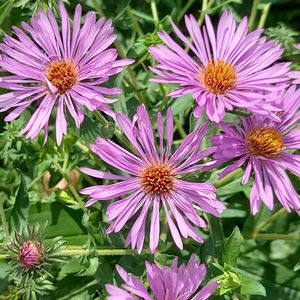 ❁Hello(*ฅ́˘ฅ̀*) 庭からの アスター 宿根草萎縮性品種暑さ寒さにとても強い💪 👀どうしてか?3密好きみたい😸3つづつなんだなꕥꕥꕥ🌿ꕥꕥꕥ🌿 ❁花言葉✾あなたを忘れない 追憶🎥思い出🎞 この色 好み🤗