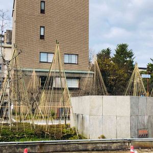 市役所前の植え込みの植物群に、今年も雪つりが施されていました。 (´∀`*)
