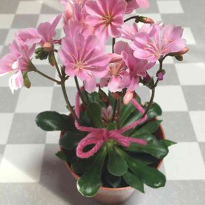 GSで初めて知ったレウィシア💓 やっとお迎え出来ました😘👍 透明感のあるピンクが美しい〜〜😍✨✨ 茎が伸びて広がっているので🎀してみましたよ〜😁💕💕