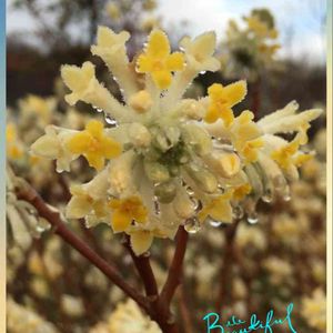朝の散歩道😊 雨上がりの朝✨✨ ミツマタの小花がキラキラ〜✨ 枝が三本に綺麗に分かれているのも神秘的〜♪(´ε` )💕