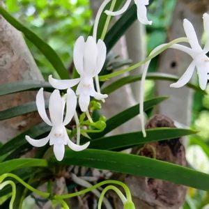 涼しさを呼ぶフウラン ①は昔から居る着床ラン ②板に着床させた義兄のお手製 ③寄せ植えの中の涼しげなカルーナ ④放置状態だったベルガモット🩷 ⑤ギガンチウムを断念し、ジャンボニンニクの花で我慢してるけど、結構お気に入り💜😅