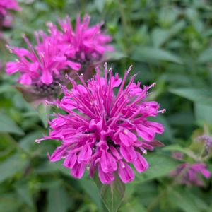 "木曜日は桃色" 散策路沿いの花壇。 モナルダが鮮やかに咲いていました。 別名タイマツバナ、ベルガモット。 📷️ 2025.5.末