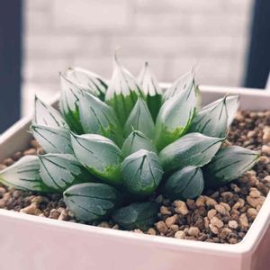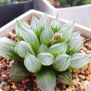 おはようございます。曇りの朝です。ハオルチア222号の🌵白ミュータント🌵大きくなりました。2020.8月お迎え✨