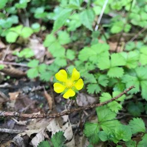 ヒメヘビイチゴ(姫蛇苺) 赤星山の山中にあります🌼