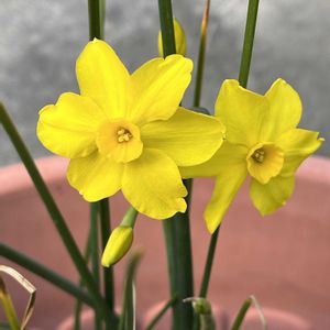 スイセンさん💛🧡 鉢植えで植えっぱなしの子 少し花が少ないかな🌼 可愛いく咲いてくれましたよ 💛🧡👍