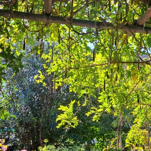 藤の花は豆となり 🐝🎶 クマバチ君の丁寧な仕事に実りあり ただほとんどは落下します 毎日この下は豆だらけ🫛🫛🫛 睡蓮も植え替えました 最初しばらくはグリーンウォーターのようになるのよね 肥料のせいか気温のせいか でもなんか身体によさそうな〜🐟✨