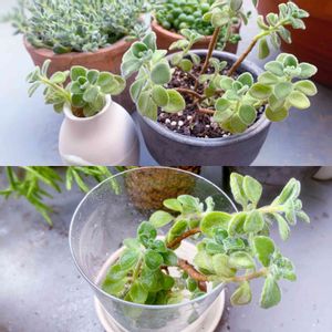上:葉っぱが黄色くなってきて「おや…」と触ったら、根っこがなくすっぽ抜けたアロマティカス先生 下:お手当て中のアロマティカス先生😥 根っこちょびちょび生えてきたので、今日は活力剤を吹きかけてみました🌬