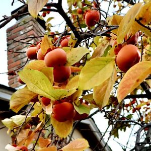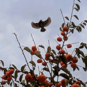 柿の実 一番上は高さ5m 鳥たちの楽園です💕