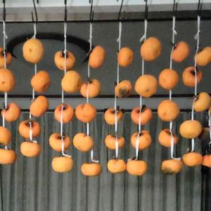 干し柿 一気に寒くなったので… 大急ぎで剥きました‼️😅 🐦⬛🐦️鳥に突かれないように 洗濯ネットをかけました‼️😆 実生の柿の木の恵みです‼️😄