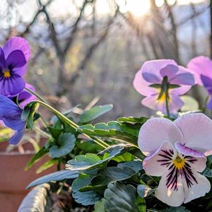 夕陽を浴びて美しいビオラさん… 今日は庭に沢山ヒヨドリが 飛び交いました 遠くの柿の木でも 実を食んでいるのが見えました (大分切り取りましたが💦) 🏷️トリの日…に 初参加させて下さいね🎶