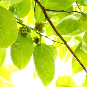 おはようございます😃 今日のお花 ✿カキ✿ ①5月に咲いていた とても小さなお花です😊 ②大きな実になりました (*˘︶˘*).。*♡