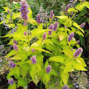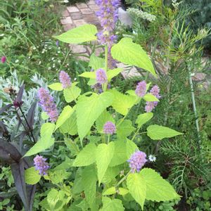 こぼれ種でどんどん増えるアガスターシェようやく見ごろが来ました。 ライムグリーンの葉がはなやかで気持ちいいカラーリーフの定番です。