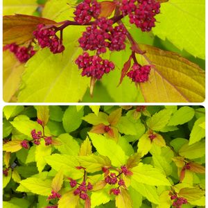 前に投稿した事のある黄金シモツケです。 葉っぱはライムグリーンに変わり、蕾を沢山持っていましたが、何やら見たことない無数の生命体が🐛😰 オーガニックの薬で駆除しました。 蕾はかりかり、葉っぱは穴だらけ😭 残念です。 でも、気が付いた事があるの。 側を通るたびにどこからか、いつもいい香りがして、キロキロしていましたが、 この黄金シモツケの葉っぱから香っていたのです。 もう凄い古株なのに今頃気がつくなんて ちょっと笑える😅