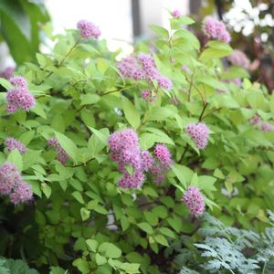 切り戻したシモツケに二番花が咲きました。 シモツケの二番花は、初めてなので嬉しい😃🎶