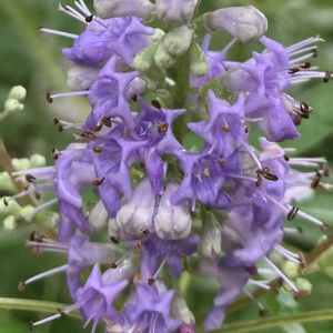 こんにちは😃😃 今日でお祝い最後ですね♪(๑ᴖ◡ᴖ๑)♪♡♡♡♡♡ 🏷️ (祝)チーム・ブルー60000pic 🏷️ 彩月(いろどりづき)の青い花2025 ◎ セイヨウニンジンボク セイヨウニンジンボクは南ヨーロッパ、西アジア原産の落葉低木で、日本には明治中期に渡来しました。 葉のかたちが「チョウセンニンジン」に似ていることから、「ニンジンボク」と名付けられました。梅雨の終わりから夏の暑い時期にかけて、約20cmと大きな花穂を次々と咲かせ、また木が若い(小さい)頃からよく花を付けるので、鉢花としても人気があります。 大変丈夫な植物ですので屋外越冬可能にて簡単に育てることが出来ます。(冬季落葉)この木は株全体に、また花後にできる果実にも香りがあり、風味はコショウに似て香辛料として使われたこともあったようです。現在では、健康食品やハーブティーに利用され、世界各地で栽培されています。セイヨウニンジンボクは英名で Chaste tree(清純な木)といいます。 花散歩で見つけ名前をやっと分かりとってもとっても嬉しいです♪(๑ᴖ◡ᴖ๑)♪💜🤍💜💚💜